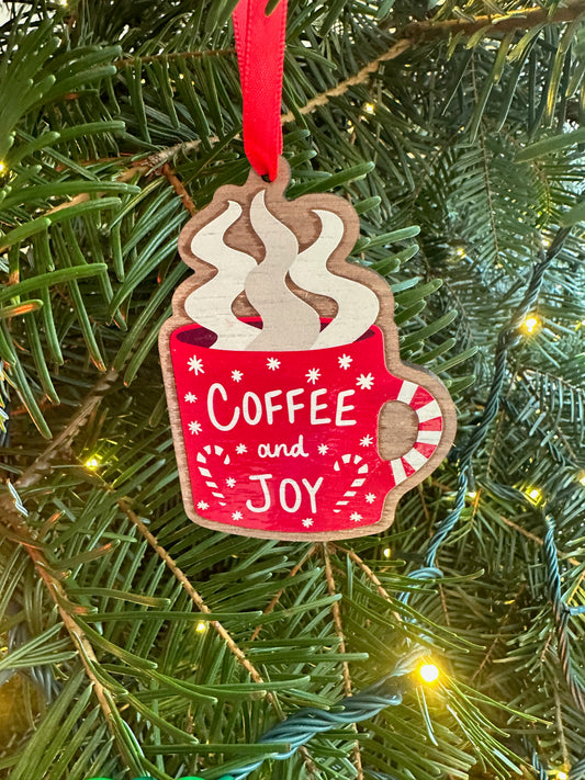 Coffee & Joy Red Mug Wood Ornament