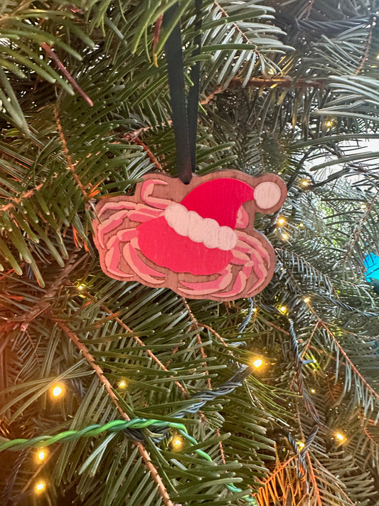 Sandy Claws Santa Crab Wood Ornament