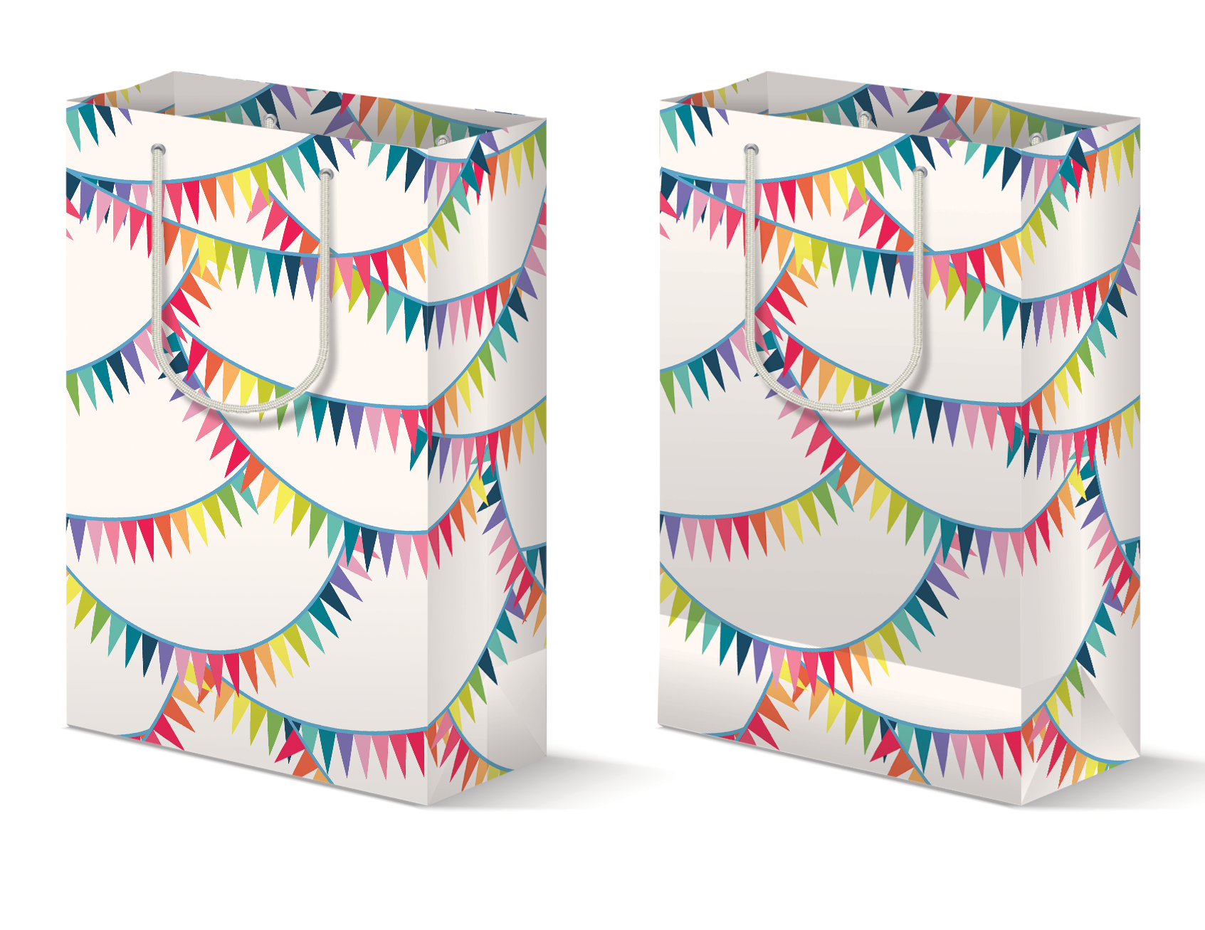 This Rainbow Bunting Birthday Gift Bag is the perfect way to make any celebration extra special. Rainbow banners criss-cross around the bag for a colorful, fun way to complete your gift-giving experience. Perfect for birthdays, congratulations, graduations, and more!